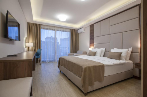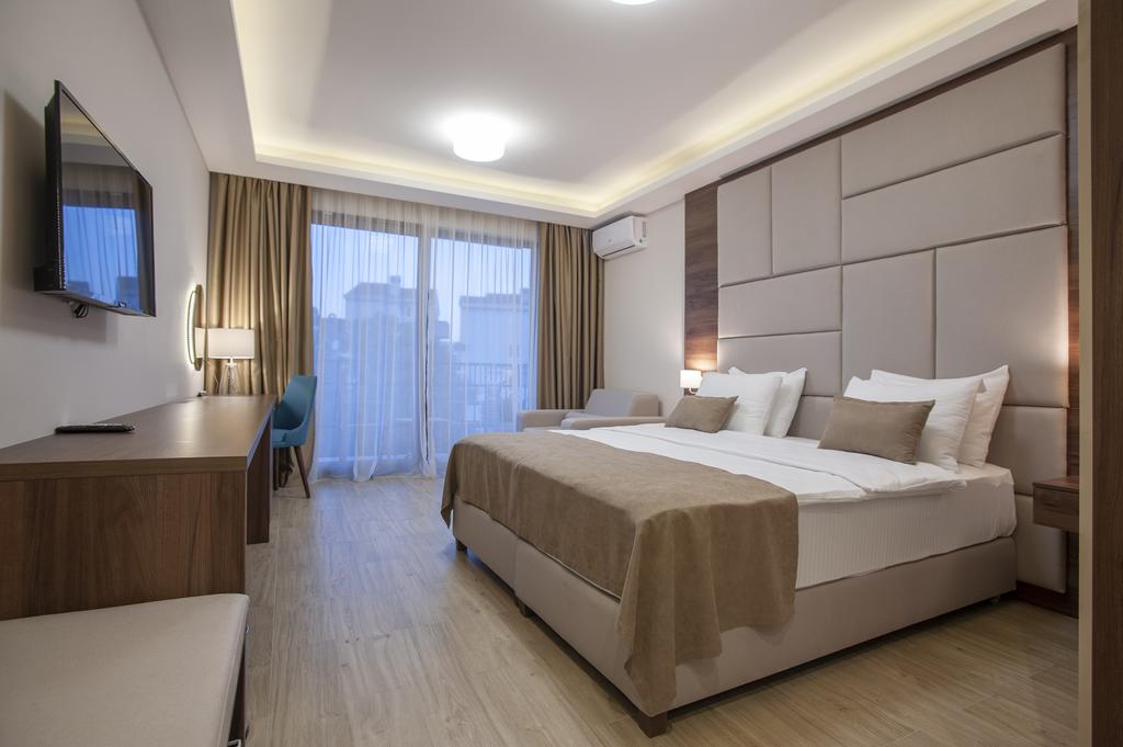 В DBL STD: французская или раздельные кровати, софа, кондиционер, спутниковое ТВ, Wi Fi интернет, сейф, мини бар, санузел с душевой кабиной, фен, балкон с видом на город. Максимальное размещение: 3 чел. Площадь 26 м2.