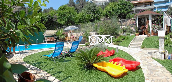 За виллой находится маленький парк с детской площадкой, летней беседкой для гостей и двумя фонтанами, а также с собственным бассейном.