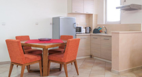 АPP 06: гостиная с раскладывающимся диваном, полностью оборудованная кухня, две спальни с французскими кроватями, сейф, кондиционер, спутникове ТВ, Wi Fi интернет, санузел с душевой кабиной, стиральная машина, утюг, фен, балкон. Максимальное размещение: 6 чел. Площадь: 65 м2.