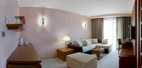 В FAMILY: Спальня с французской или раздельными кроватями, гостиная, диван с креслами, электрочайник для приготовления горячих напитков. Максимально: 2 взрослыx +2 детей (для 4-го человека доставляют раскладушку) (44,62м2).