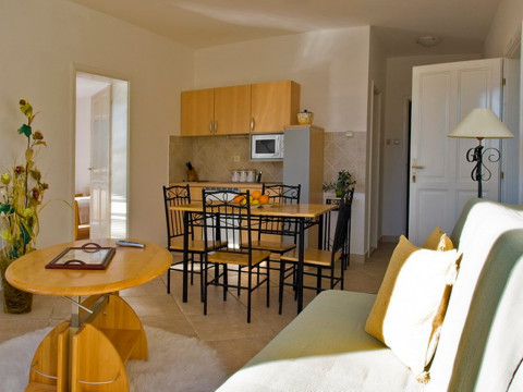 В STUDIO 04 NO BALCONY: французская кровать и раскладной диван, кондиционер, холодильник, кухня с необходимой посудой, балкона нет!!!, санузел с душевой кабиной, фен, спутниковое ТВ, Wi Fi интернет. Максимальное размещение- 4 чел.