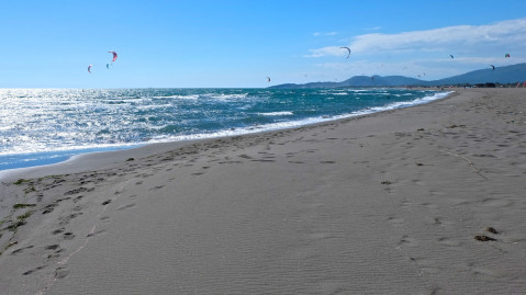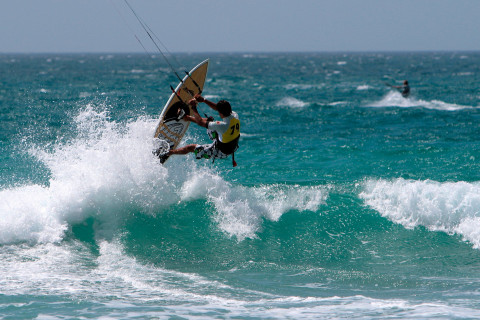 В самой ужной части Великой Плажи построено несколько кайтсерфинговых станций. Среди них есть пара русских: KitePlaza и Miracle Beach. Сюда приезжают как опытные спортсмены, так и новички. На каждой станции есть прокатное оборудование от гидрокостюмов до самих кайтов различной величины, есть инструкторы, которые могут обучить этому спорту, есть ресторанчики, где можно перекусить.