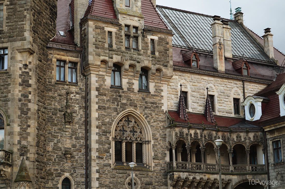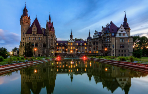 Этот старинный замок расположен в Опольском воеводстве, в деревне Мошна, которая, согласно легенде, когда-то принадлежала Ордену тамплиеров. Мошненский замок был построен в конце XVIII — начале XIX века на месте пострадавшего от пожара барочного дворца семьи фон Тиле-Винклеров. Сейчас он открыт для туристов. Часть замка местные власти превратили в отель, открыли там ресторан, кафе и даже спа-центр. В часовне регулярно проходят концерты сакральной музыки, а в залах — выставки картин. Чаще всего туристы приезжают в Мошну в теплое время года. Возле дворца на двухстах гектарах раскинулся великолепный парк, по которому можно погулять, увидеть трехсотлетние дубы и полюбоваться всеми 99 башнями невероятно красивого замка. Любители экстрима могут воспользоваться специальным предложением: отправиться на необычную экскурсию по темным подземным лабиринтам и башням.