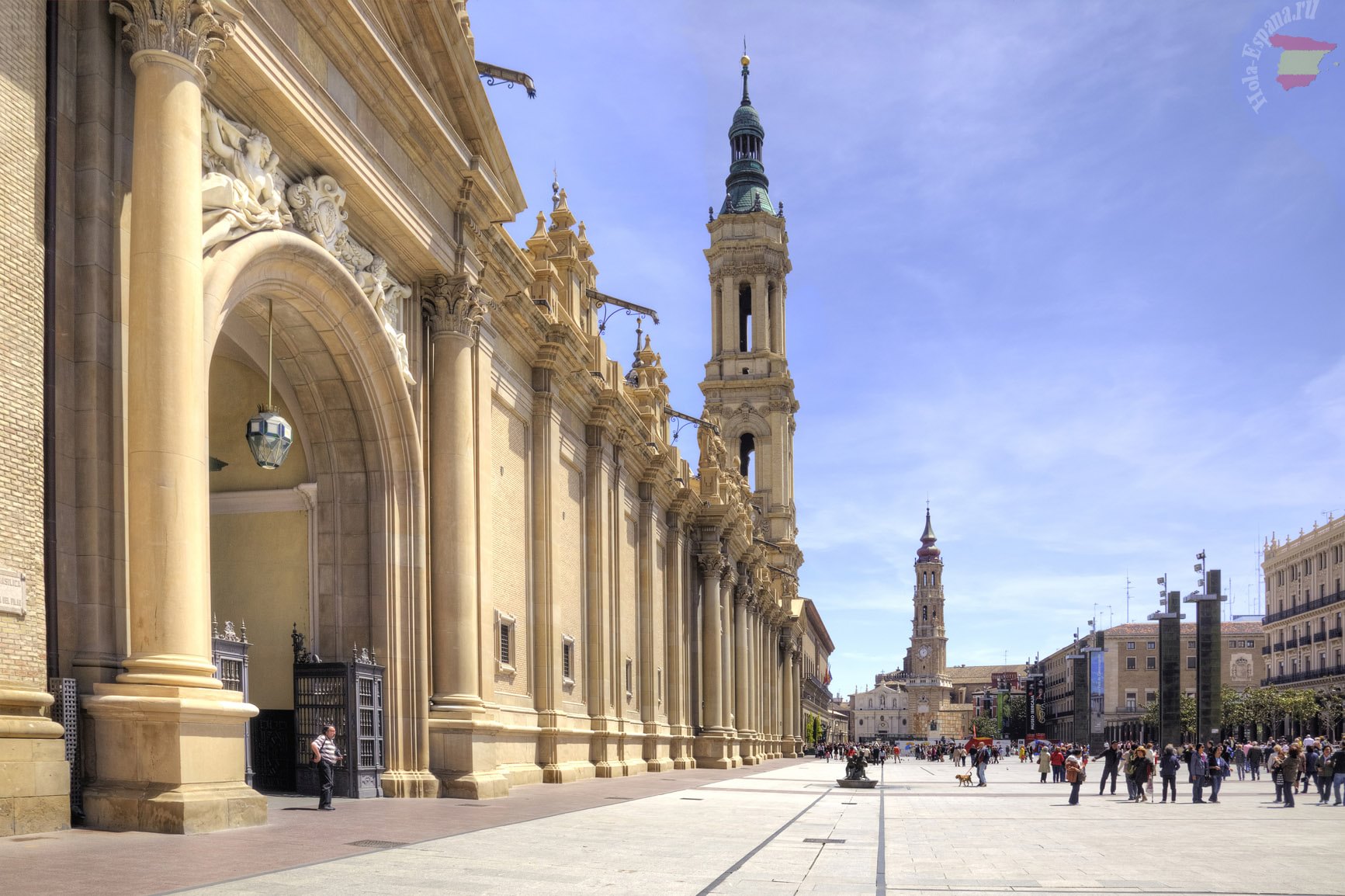 По преданию, около 40 г. н.э. в Сарагосе проповедовал христианство апостол Иаков. Около колонны Пилар ему явилась Богородица. Позднее здесь была построена часовня, а впоследствии — огромная Базилика-де-Нуэстра-Сеньора-дель-Пилар, — старейший и самый почитаемый в Испании храм в честь Девы Марии. Ранее на этом месте стояла небольшая часовня, воздвигнутая сразу после освобождения Сарагосы от арабов. Строительство современного здания, начавшееся в XVII веке, продолжалось вплоть до середины XXвека.