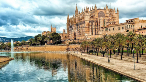 Второй памятник - это Кафедральный Собор, построенный на месте старой арабской мечети. Кафедральный Собор виден отовсюду. Строительство его было начато в XIII веке. По легенде, король Хайме I Арагонский по пути на Майорку, где он собирался сражаться с арабами, попал в шторм. Король поклялся построить великолепный храм во славу Божию, если Господь оставит его живым и невредимым. В соборе можно увидеть великолепные витражи XIV-XVI веков. В часовне Святой Троицы захоронены останки каталонских и арагонских королей. Жемчужиной коллекции соборного музея является ковчег Истинного Креста, инкрустированный драгоценными камнями и датируемый XV в. Напротив Собора возвышается древний дворец королей Майорки, - Альмудайна, ранее бывший арабской крепостью. В этом дворце проходят официальные приемы, даваемые испанской королевской семьей во время пребывания на острове.