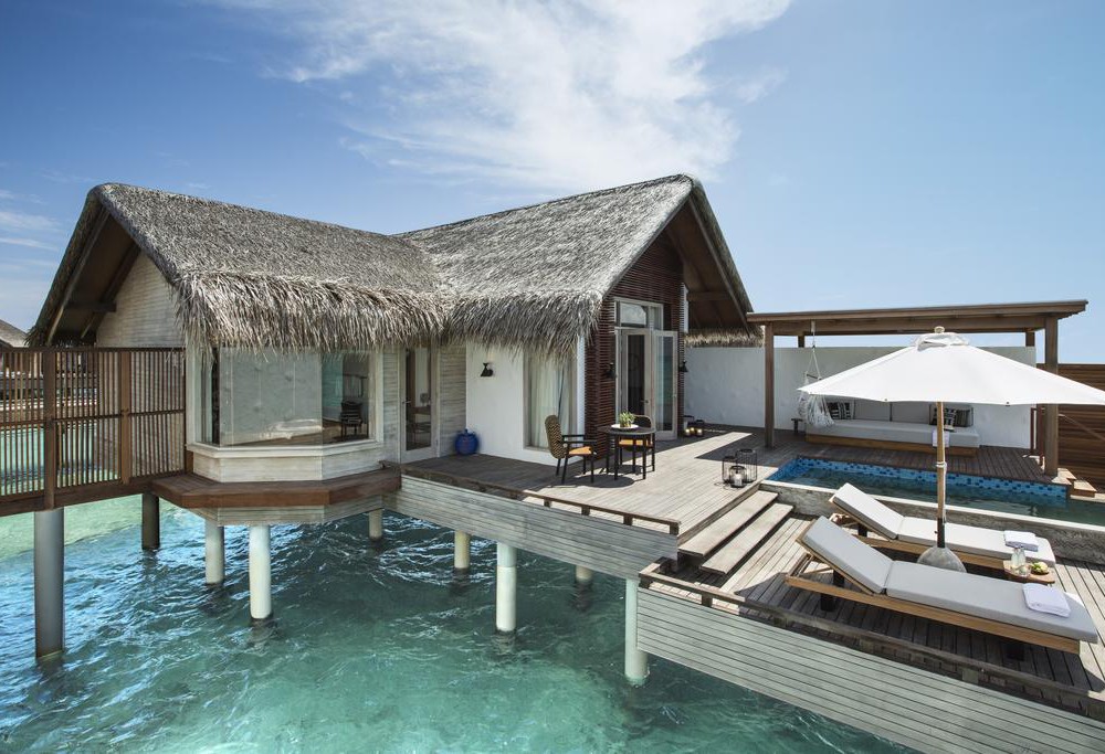 Two Bedroom Water Sunset Villa (428 кв.м, вілли над водою з прямим спуском у воду з видом на захід, дві спальні, дві ванні кімнати, вітальня з обідньою зоною, приватний басейн 36 кв.м)