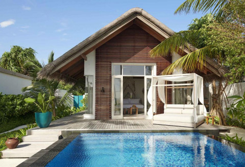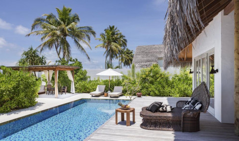 Beach Villa Sunrise (360 кв.м, берегові вілли в оточенні саду, вид на схід, спальня, вітальня, ванна кімната відкритого плану, приватний басейн 14 кв.м)