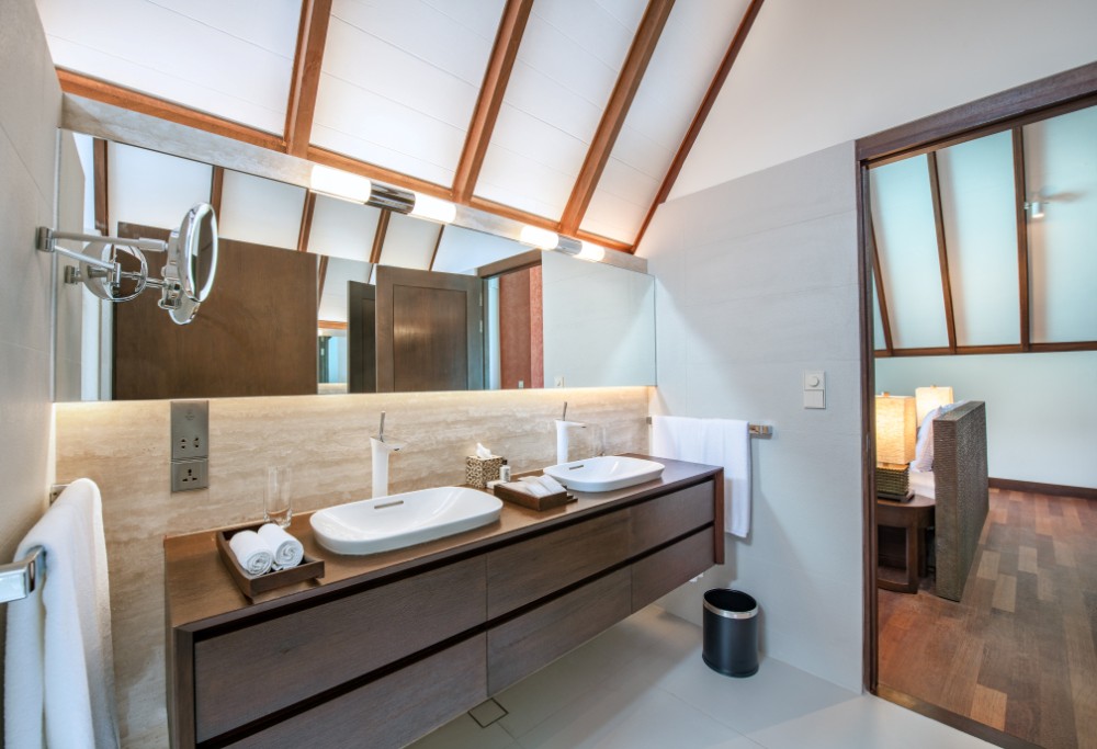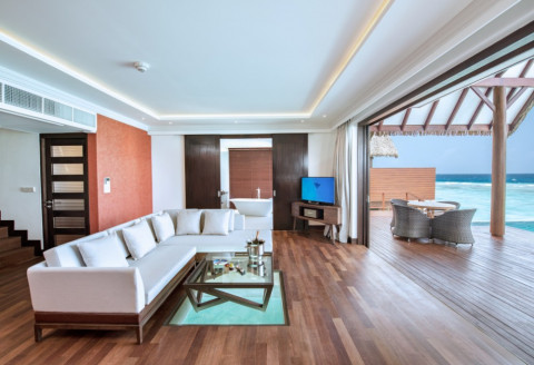 25 номерів Ocean Suite (158 кв.м, дуплекс вілли на воді з приватним басейном, спальня на другому поверсі, простора вітальня на першому поверсі, веранда на відкритому повітрі, ванна з джакузі, прямий спуск до лагуни.)