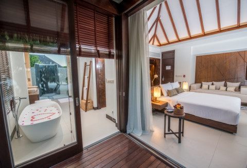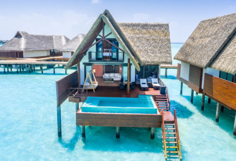 1 номер Ocean Residence (316 кв.м, вілла на воді з приватним басейном, дві спальні, простора вітальня, веранда на відкритому повітрі, ванна з джакузі, прямий спуск до лагуни.)
