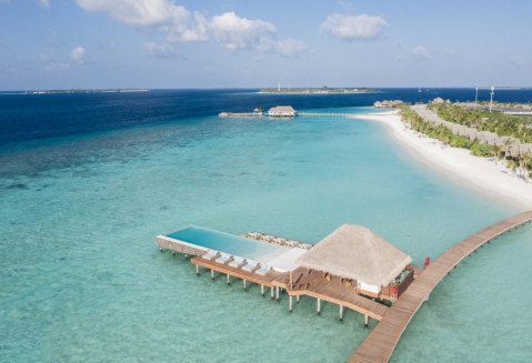 56 номерів Ocean Villa (93 кв.м, вілли на воді, веранда на відкритому повітрі, ванна з джакузі, прямий спуск до лагуни.)