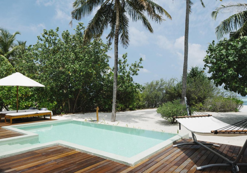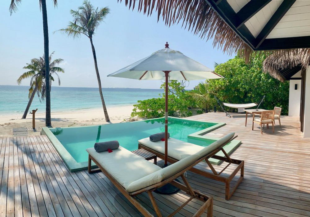 Two Bedroom Beach Pool Retreat (400 кв.м, берегові вілли на західній стороні острова, дві спальні, дві ванні кімнати, вітальня з обідньою зоною, тераса з лежаками, вихід на пляж, приватний басейн)