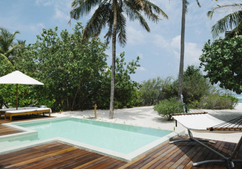 Beach Pool Villa (220 кв.м, берегові вілли на східній стороні острова, спальня з зоною відпочинку, тераса з лежаками, вихід на пляж, приватний басейн)
