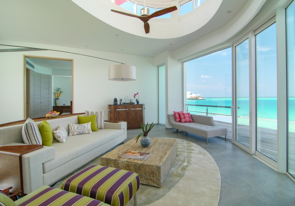 31 номер Deluxe Water Villas (110 кв.м (всередині приміщення) / 351 кв.м (загальна площа), вілли на воді з прямим спуском у воду, з однією спальнею, вітальнею і приватним басейном, панорамний вид на океан)