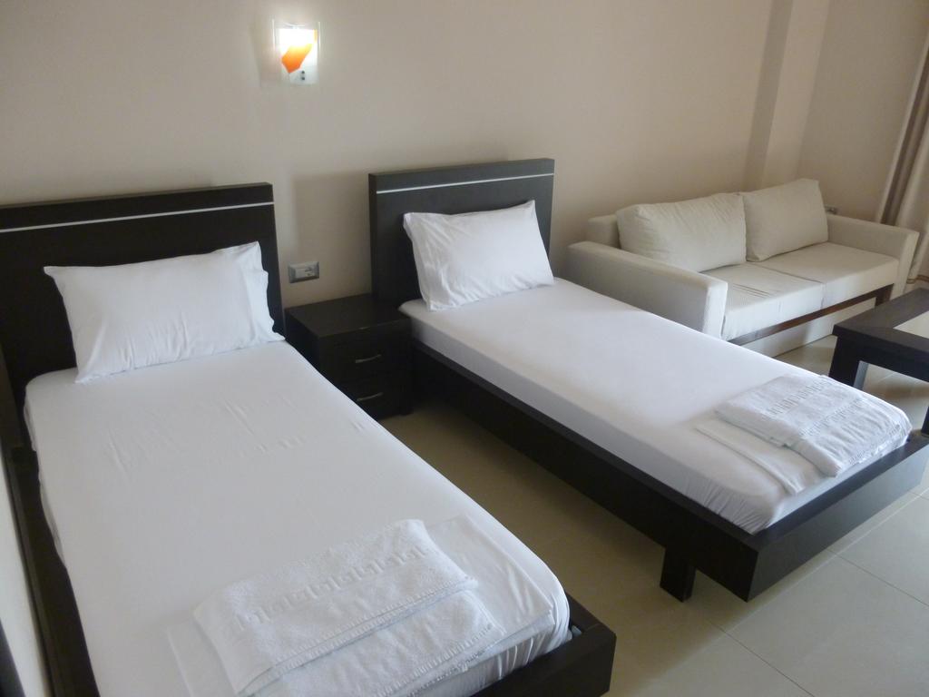 Всього в готелі: 32 номери. У номерах: двоспальне ліжко, шафа, міні-бар (платно), телевізор, нічна тумбочка, ванна кімната (фен, душкабина, душові приналежності), балкон, кондиціонер. Прибирання номера (1 раз на 2 дні). Зміна постільної білизни (1 раз в 2 дні).