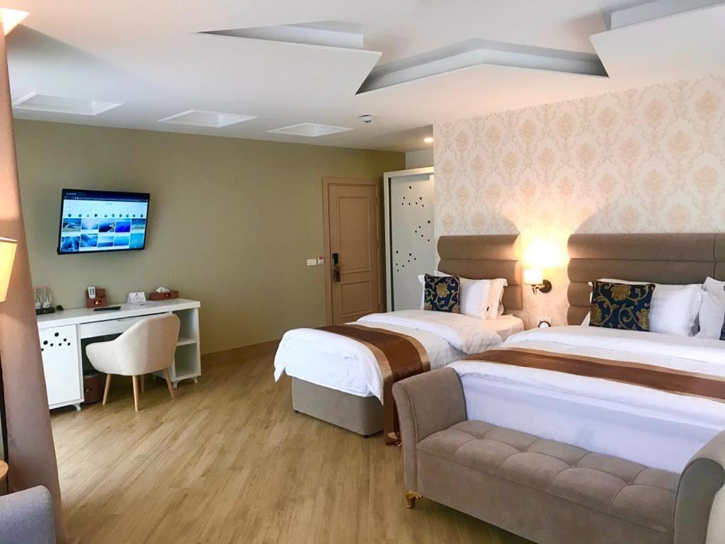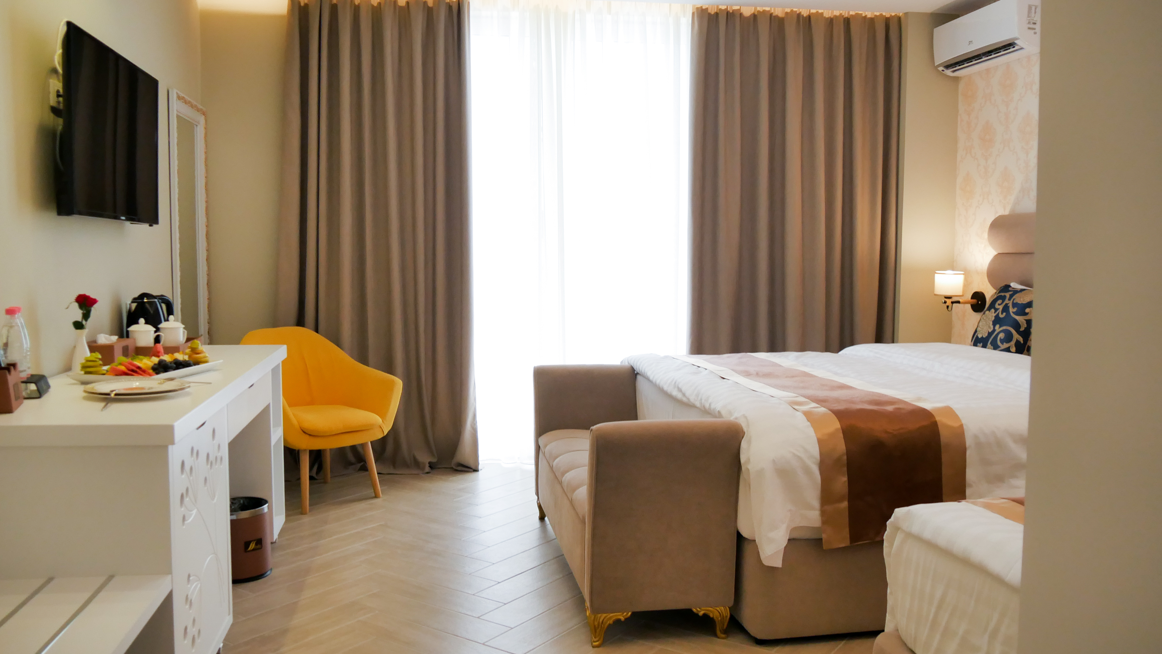 В кожному номері: кондиціонер, телевізор, міні-бар (платно), сейф, ванна кімната (душова кабіна, туалетні приналежності, рушники, фен), шафа для одягу, телефон для зв'язку з ресепшин.