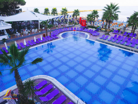 Гарний і сучасний готель Fa-Fa Premium 5 * знаходиться на першій лінії Адріатичного моря в курортній зоні Дурреса - Малі та делать; був відкритий в 2016 році, проте вже встиг отримати високі оцінки від гостей. Тут є все необхідне для приємного відпочинку: два басейни на території для дітей і дорослих, приватний пляж, ресторан A la Carte середземноморської кухні, основний ресторан All Inclusive, бар на пляжі і біля басейну, конференц зал (за доплату), дитячий майданчик, Wi -Fi, обмін валют, цілодобова стійка реєстрації, безкоштовна парковка, послуги пральні (платно).