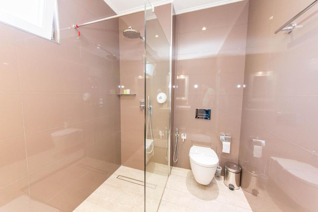 DELUXE DBL room, близько 25 м², покращений однокімнатний номер з видом на море (SV), 1 двоспальне ліжко розміру King size, є вітальня зона з 1 диваном (може спати дитина до 7 років). Додаткове ліжко для дорослого надається платно за запитом. Загальна кількість номерів у готелі: 11.