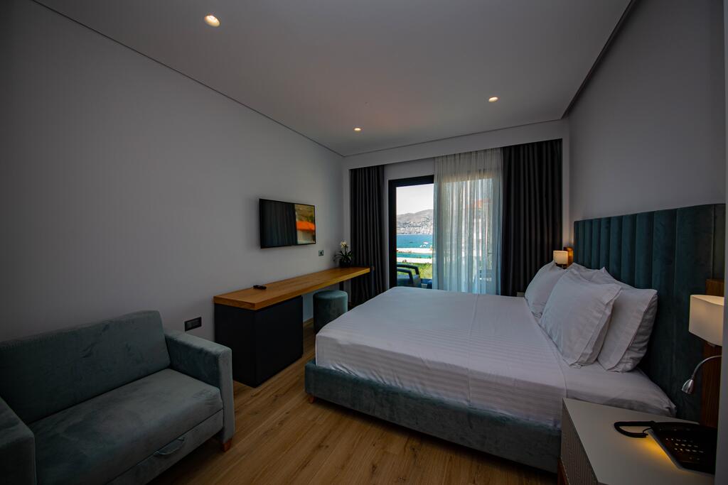Двомісний номер Делюкс з 1 ліжком або 2 окремими ліжками, вид на море з балконом, кондиціонером і телевізором з плоским екраном.