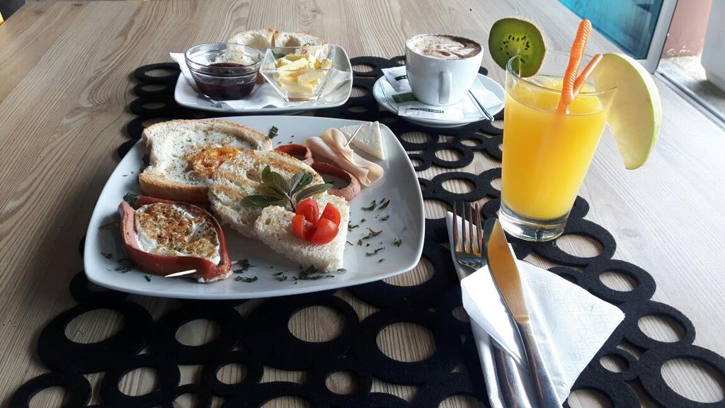 Типу сніданку, обіду і вечері - "шведський стіл". Обід і вечеря включають алкогольні напої місцевого виробництва (вино, пиво).
