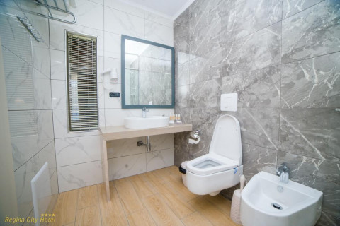 Готель Regina City з баром і рестораном розташований в місті Вльора, навпроти пляжу. До послуг гостей відкритий басейн з видом на море. У кожному номері є кондиціонер, телевізор з плоским екраном і ванна кімната з ванною або душем. Гостям надаються тапочки і фен. Стійка реєстрації працює цілодобово. За додаткову плату організований трансфер від / до аеропорту, а також прокат велосипедів і автомобілів. Гості можуть відвідати приватний пляж, скористатися спорядженням для водних видів спорту, зайнятися дайвінгом, риболовлею і іншими видами активного відпочинку.
