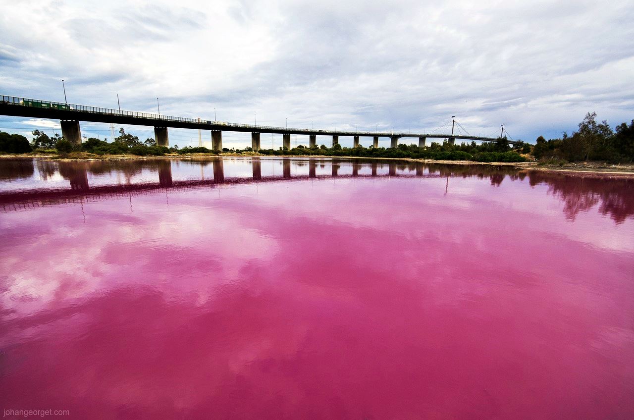 -За однією з версій, рожевий колір утворюється завдяки пігменту, що його виділяє певними мешкають у водоймі мікроорганізмами.