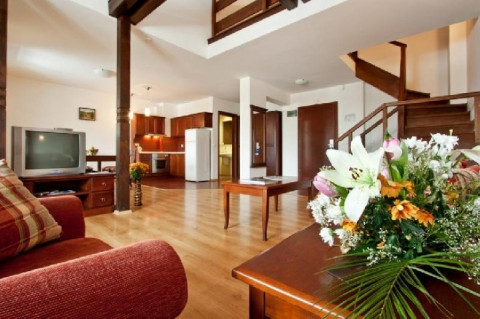 Номери У житлових будинках: 1 BEDROOM APARTMENT in APART HOUSE: 2 приміщення: вітальня з раскл. диваном, камін і кухонним куточком / ел. плита, холодильник, без кухонного посуду /; спальня з 2 односпальні ліжка або 1 велике односпальне ліжка; 1 ванна кімната з душем або вонной; макс. 2в 2р; 69-144 м2; 2 BEDROOM APARTMENT in APART HOUSE: 3 приміщення: вітальня з разкл. диваном і кухонним куточком / ел. плита, холодильник, без кухонного посуду /; 2 спальні, кожна з одним великим ліжком; 1 ванна кімната з душем або ванною; макс. 4в 2р; 117 м2
