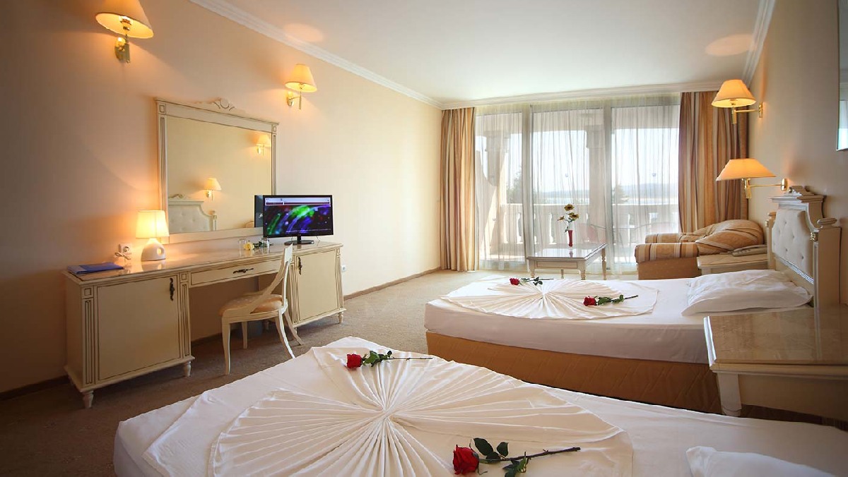 JUNIOR SUITE PV / SV: два односпальні ліжка, раскл.діван; 1 ванна кімната з ванною; макс.2в. + 2р., 3в. + 1р., 3в .; 32-36 м2.
