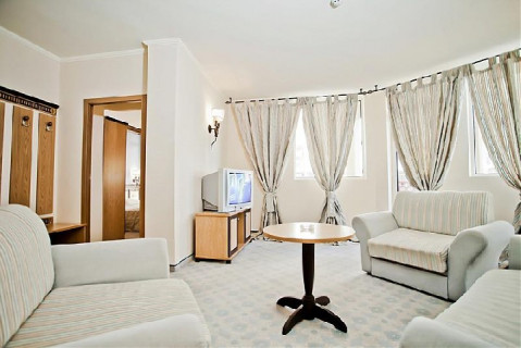 У закритому комплексі "Еленіте", на березі моря. 145 номери / 130 двомісних номерів з видом на море / парк, 15 апартаментів з видом на море / парк /.
