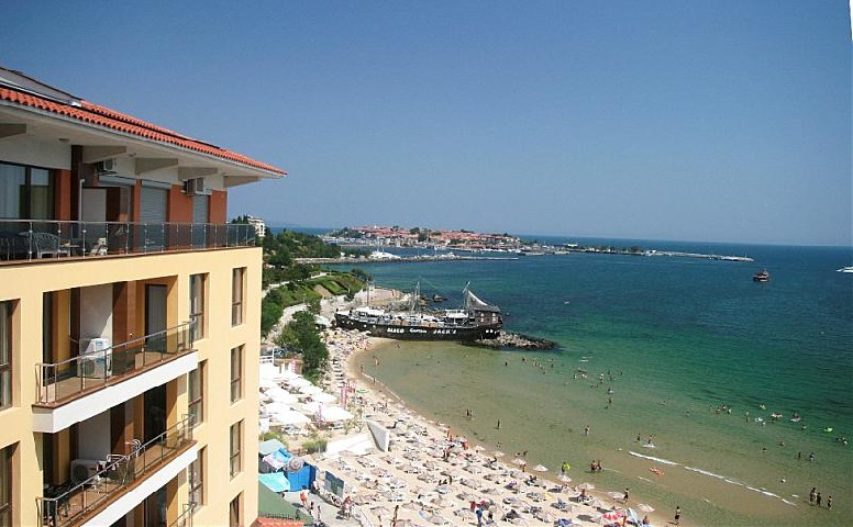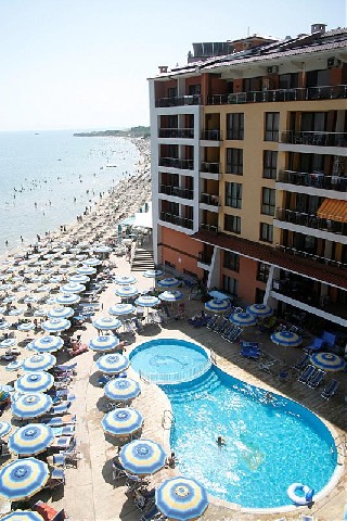 У південній частині міста Несебр, на березі моря. 86 номерів.