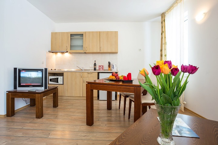 STUDIO: вітальня / два односпальні ліжка або одне двоспальне ліжко / с кухонним куточком; ванна кімната; макс. 2в .; 33 м2;