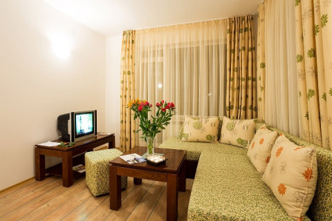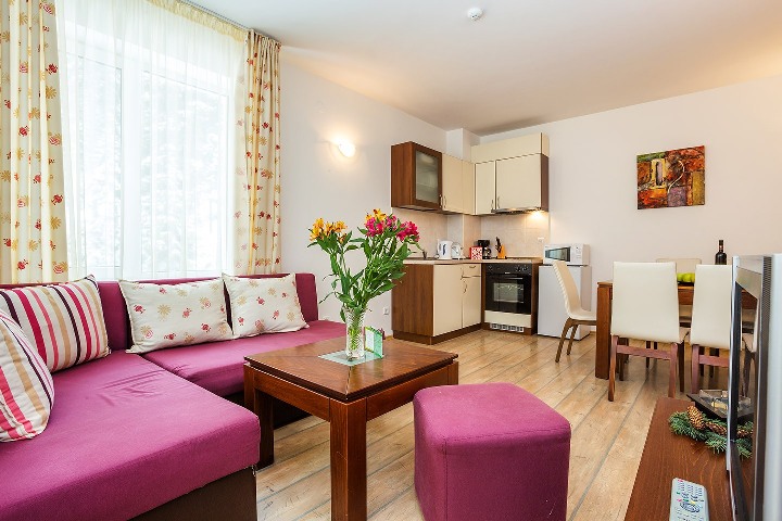 2 BEDROOM APARTMENT: 3 приміщення - вітальня з диваном і кухонним куточком; 2 спальні; ванна кімната; макс. 4 в. 2р; 60 м2;