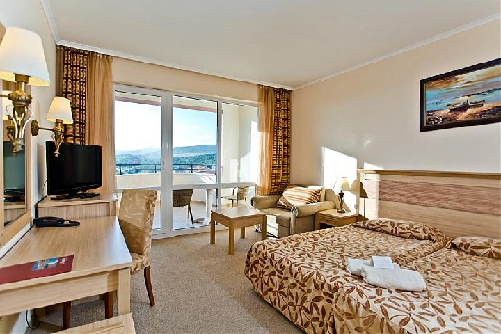 У центральній частині курортного комплексу Сонячний берег, на березі моря. 732 номерa / 339 двомісних номерів, 173 студіо, 220 апартаментів з дверима між кімнатами /. Рік останнього ремонту - 2018.