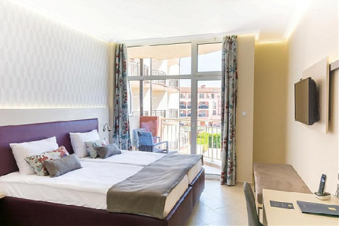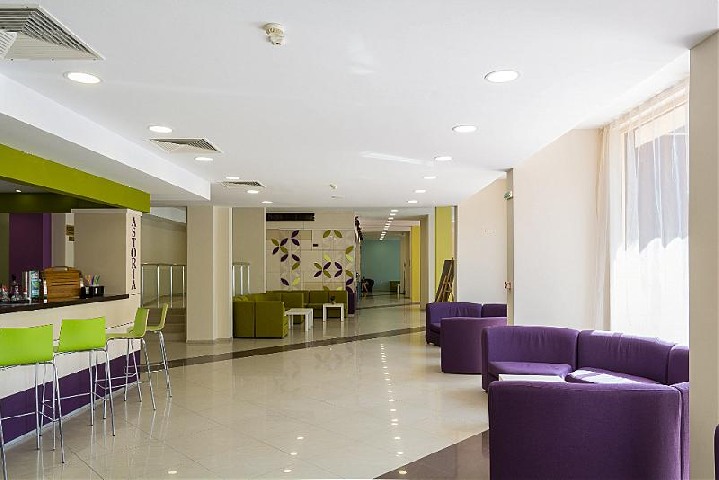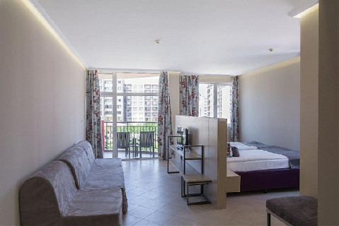 У центральній частині курортного комплексу Сонячний берег, 10м. від пляжу. 185 номерів. У завершено в 2018году!
