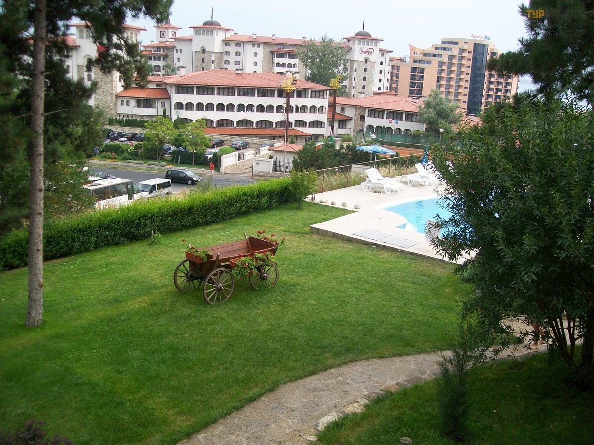 Знаходиться в північній частині курорту Сонячний берег, поруч з сосновим лісом в 2 км від центру курорту і в 200 м від пляжу.