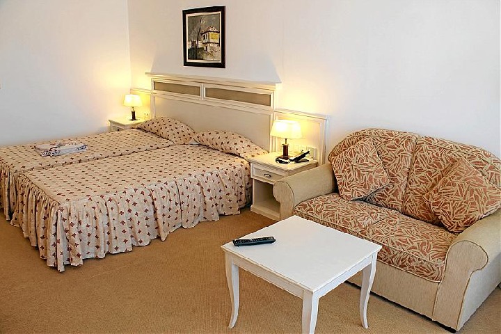 JUNIOR SUITE: 2 приміщення, в спальні: 1 двоспальне ліжко, у вітальні: раскл.діван; 1 ванна кімната з ванною; макс.2в. + 2р., 3в .;