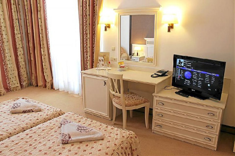 SUITE: 2 приміщення з двері між кімнатами, в спальні: 1 двоспальне ліжко, у вітальні: раскл.діван; 1 ванна кімната з ванною; макс.2в. + 2р., 3в .;