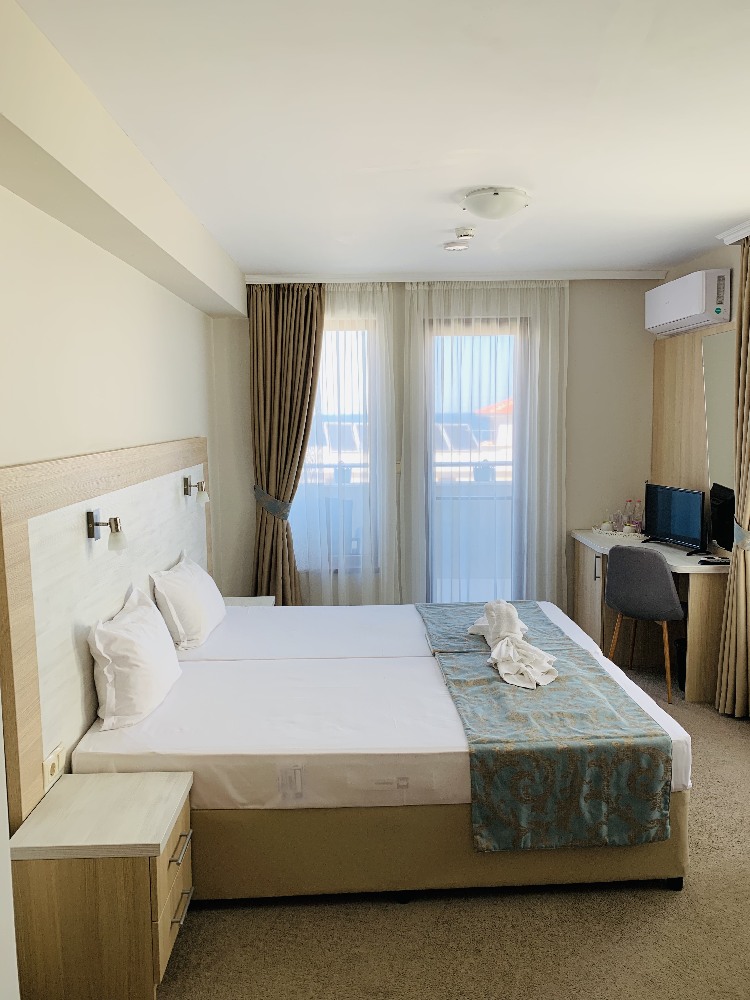 У курортному місті Созополь, в 100м. від пляжу "Бамбі Бійч". Побудований в 2016 році, 24 номера.