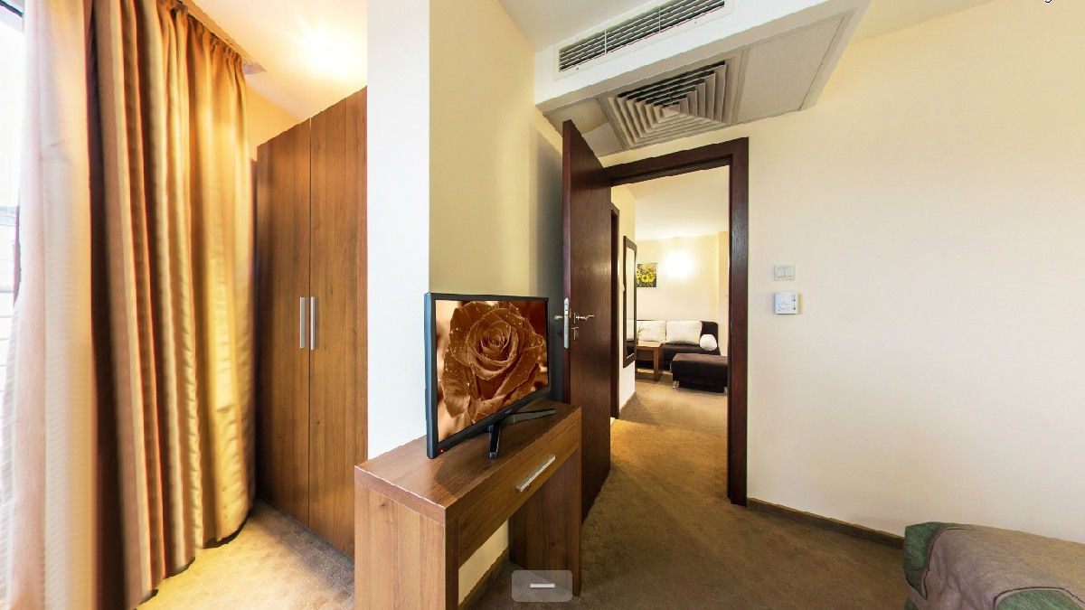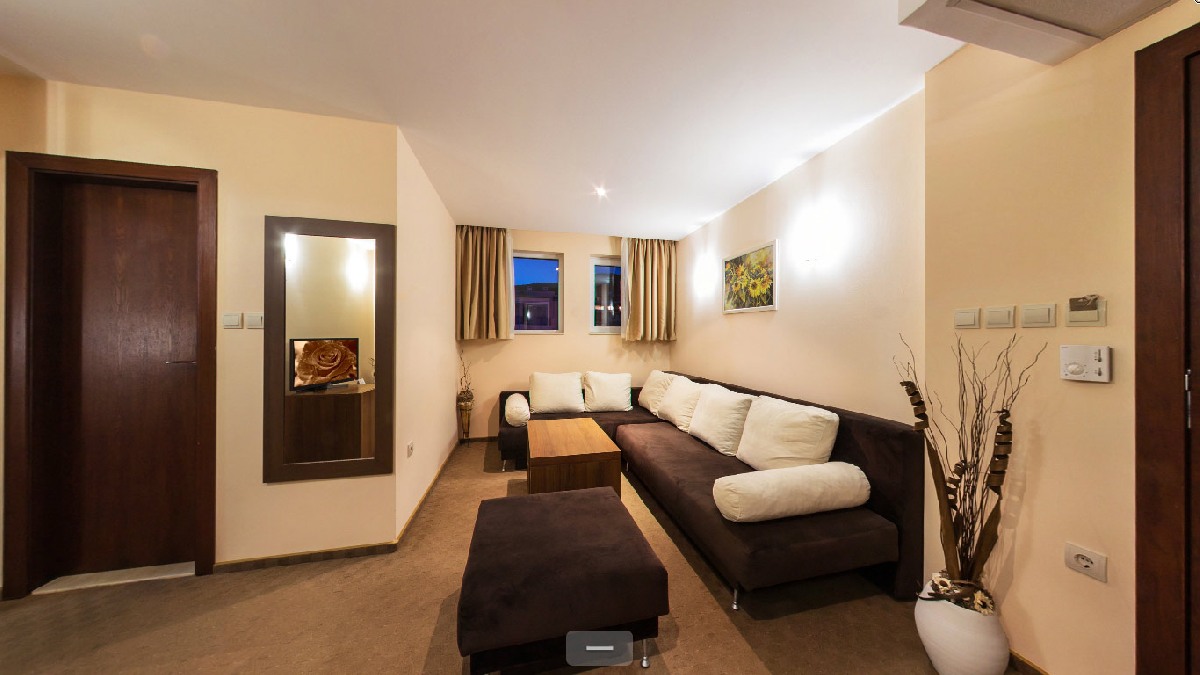 APARTMENT: дві кімнати з дверима між ними; 1 двоспальне ліжко, раскл.діван; 1 ванна кімната з душем; макс.2в. + 2р., 3в.