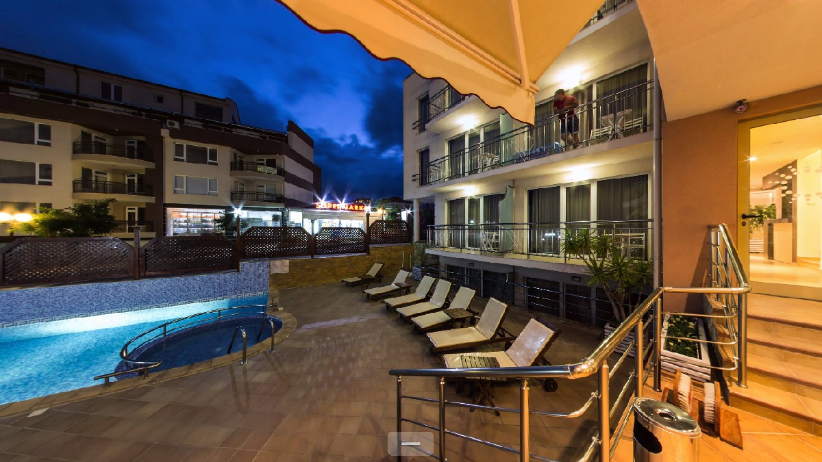 У центральній частині курортного міста Святий Влас, на 20м. від берега моря. 23 номери.