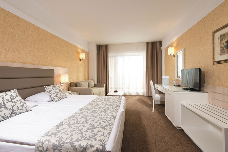 DBL SUPERIOR: велике двоспальне ліжко (200x200см), раскл.кресло, раскл.діван; 1 ванна кімната з душем; макс.3в. + 1р., 3в .; 40м2;