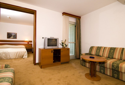 8 номерів JUNIOR SUITE Superior Balcony (40 кв.м, балкон, сторона моря, спальня з ліжками twin + вітальня з 2 диванами, з'єднані розсувними дверима, килимове покриття, макс. 3 чол.)