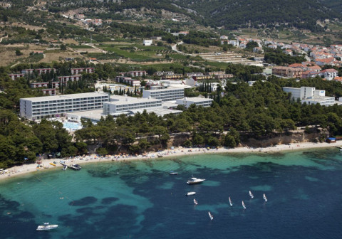 Готель розташований в мальовничому сосновому бору, в 150 м від пляжу, в 10 хвилинах ходьби від центру м Бол і відомого пляжу Златні Рат, і в 80 км від міжнародного аеропорту.