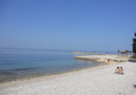 2 крупногалечних пляжу, 2 мелкогалечних пляжу, численні кам'яні плато, парасольки і лежаки - за додаткову плату; лежаки біля басейну - безкоштовно; пляжні рушники - безкоштовно (під депозит). На пляжі є душ, ресторани, бари. Увійти в море можна з кам'яних плато, по численним сходах, встати на дно (як правило, сходи входять в море в тих місцях, де це можна зробити) і вже потім плисти. Пляжі готелю мають «Блакитний прапор» ЮНЕСКО.