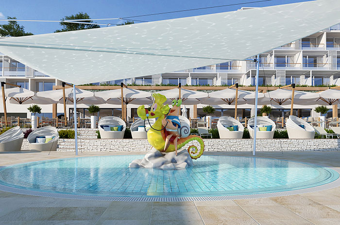 Готель входить до складу курорту Valamar Isabella Island Resort, відкритого з сезону 2015р. Курорт розташовується на о.Святого Миколи (Sv.Nikola Island) в оточенні пишної середземноморської рослинності, природних соснових лісів, доглянутих садів, різноманітних пляжів і чудових морських панорам всього в 5 хвилинах по воді від пристані г.Пореч, в 55 км від аеропорту г.Пула. Готель пропонує широкий вибір сімейного розміщення з окремими кімнатами для дітей, цілих 1000 м 2 запаморочливих об'єктів для розваги дітей різного віку і підлітків, дитячі басейни та сімейні пляжі, професійні послуги догляду за дітьми і немовлятами, дитячий куточок шведського столу ресторану з дитячим меню.