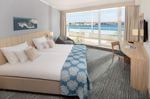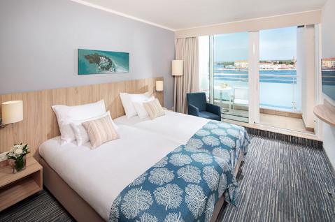 Перейти на сайт готелюПідігріває басейн з прісною водою (пл.600 кв.м.) з 2 водними гірками і окремим дрібним дитячим басейном, зовнішній infinity-басейн з морською водою в спокійному місці, площею 250 кв.м; обслуговування номерів (07: 00-22: 00); безкоштовний трансфер до Пореча і назад (щодня, протягом дня, кожні 30 хв.); парковка на стоянці «Жатіка» (на материку, за доп. плату); Wi-Fi (безкоштовно); сувенірна крамниця; обмін валюти; різні розважальні (танцювальні, музичні) заходи для дорослих і дітей, анімація, святкові вечори (раз в тиждень з червня по вересень)