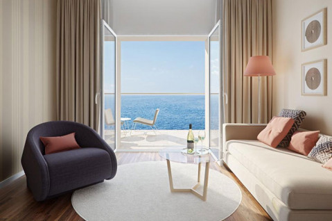 SU4VB- FAMILY Room Standard Balcony Sea View (29-32 кв.м., одна кімната, балкон, вид на море, спальня з ліжком dbl / twin, софа. Макс. 4 дор.)