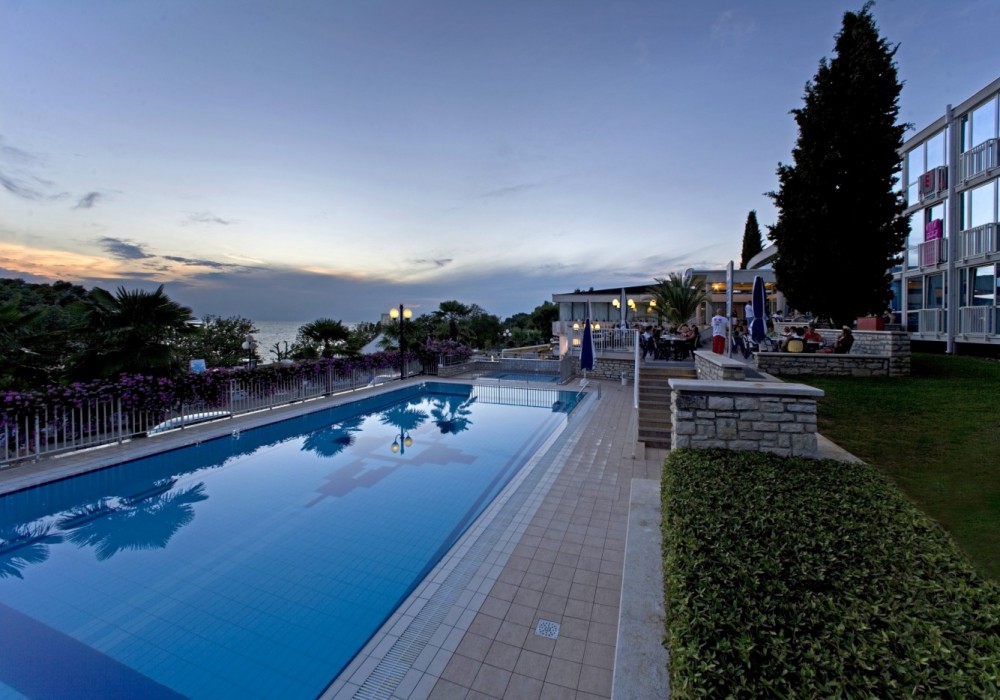 Готель відноситься до курорту Zelena Laguna і розташований поруч з готелем Plavi на самому березі моря. Працює за системою «все включено». До Пореча (5 км) регулярно ходять автобус (зупинка знаходиться поруч з готелем), туристичний автопоїзд і катери. Готель був повністю реконструйований в 1998 році, складається з трьох-, чотирьох- і п'яти-поверхових корпусів. 60 км від аеропорту. У 2017 року в готелі була проведена реновація інтер'єрів готелю.