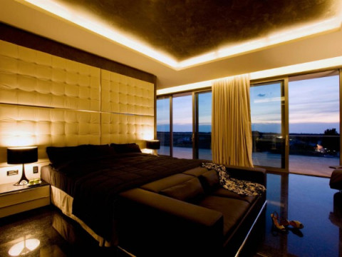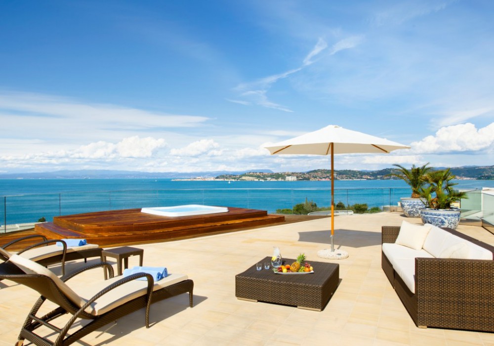 1 номер Presidential Suite Jure Grando (263 кв. М + 548 кв. М балкон, номер в чорних тонах на останньому поверсі, спальня, простора вітальня з каміном, їдальня та кухонний зони, джакузі на терасі, вид на море)