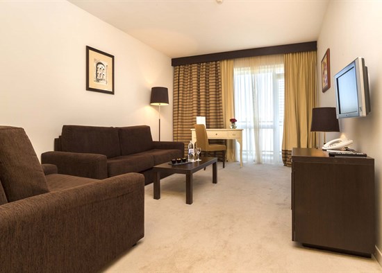 У номері: балкон, кондиціонер, телевізор (супутникове ТБ), міні-бар, доступ в інтернет (за доп. Плату), письмовий стіл, телефон, сейф, ванна кімната, фен.