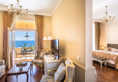 Deluxe Suite (40-50 кв.м., два балкона, вид на море, спальня, вітальня, ліжко king-size (210 x 200 см), софа, макс 3 дор.)